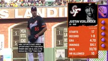00:29once again eating a ton of innings nine and eight with a three three one 141 a third 155 strikeouts to just 34 more walks on the season he's the workhorse he's the ace goes down swinging here on the change up got him with a change up down below the zone and there's the first strikeout tonight for Logan Webb here's Brian Reynolds there's a hit for Reynolds toward the wall so he'll get two out of this a stand up double with two outs maybe looking
