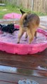 Big Dog Splashes Puppy in Small Pool