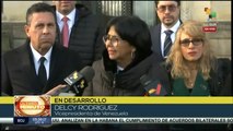 Desde La Haya la vicepresidenta Delcys Rodríguez defiende el referéndum