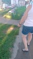 granny falls to feed the squirrel by hand