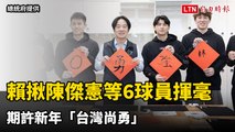 賴清德揪「台灣隊長」陳傑憲等6球員揮毫 期許新年「台灣尚勇」(總統府提供)