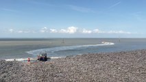 Lifeboat crews from Minehead and a Coastguard helicopter helped to rescue two people trapped on cliffs by the incoming tide.