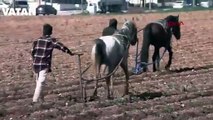 Tarlaya atlı sabanla girdi! Adana'da çekilen görüntüler tartışma yarattı