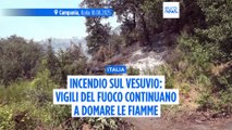 Napoli, 11 ago. (askanews) - Continua il lavoro dei vigili del fuoco per domare l'incendio boschivo nel Parco Nazionale del Vesuvio. Attualmente sono in corso le operazioni di spegnimento nelle zone di Boscotrecase in via Cifelli, a Trecase, a Terzigno e sul fronte di San Giuseppe Vesuviano dove stanno operando le squadre giunte in rinforzo dalla regione Toscana. In queste zone sono al lavoro la flotta aerea dei vigili del fuoco con 5 Canadair e un elicottero S-64, mentre sono 70 i vigili del fuoco operativi a terra con 18 mezzi antincendio.