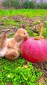 1_The little bunny hugs and eats fruit, so cute#cute #bunny
