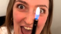 The clip features two women literally playing with fire as they take part in an indoor fire-breathing stunt.