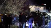 Gümüşhane’de yangın sonrası ekipler çalışırken ahşap ev çöktü