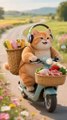FUNNY CAT AND RABBIT WITH MOTORCYCLE