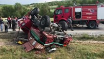 Orman yangınına giden arazöz uçuruma yuvarlandı