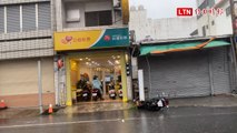 而四維路與更生路口,超商玻璃落地窗整個被吹倒