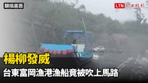 楊柳發威 台東富岡漁港漁船竟被吹上馬路(翻攝畫面)