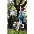 girl hanging on a tree