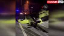 Kontrolden çıkan otomobil duran araçlara çarpıp takla attı! Dehşet anları kamerada