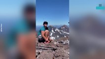 Hundreds of Butterflies Surround Woman on Top of Mountain Peak
