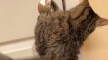 In this clip shared by Lauren, the pampered pet perches on the edge of the sink, sipping water straight from the tap like it’s a five-star spa treatment.