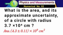 What is the area and its approximate uncertainty of a circle with radius 3.7 ×10^4 cm