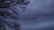 This stunning footage shows a starling murmuration forming the shape - of a meerkat's head