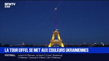 La tour Eiffel aux couleurs de l'Ukraine à l'occasion de la fête de l'indépendance du pays