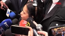 Sanremo 2026, Conti consegna i fiori a Laura Pausini al tavolo in conferenza stampa