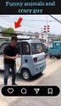 Funny animals and crazy guy