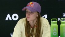 00:00Merci, aujourd'hui c'était une bonne performance pour moi et c'est toujours pas facile à jouer contre Emma, même si la score n'existe pas, mais je sais que contre elle je dois jouer très agressif et aussi essayer de jouer deep, donc aujourd'hui je pense que j'ai fait très bien, donc je suis heureux.