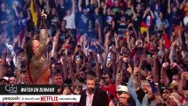 00:09In front of the announce table and out, bouncing Becky off our table.