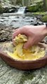 🐟 _ cooking fish in a pan by the stream