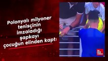 Polonyalı milyoner tenisçinin imzaladığı şapkayı çocuğun elinden kaptı