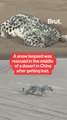 A snow leopard got lost in the desert in China.