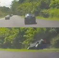 一辆轿车在大道上突然偏离车道,差点就撞上一辆高速行驶的重型摩托车,原来这都是因为这名女司机在驾驶时使用手机导致分心。