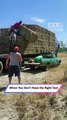Without even realizing what had happened, the driver kept going, leaving behind a giant straw surprise for everyone else to deal with.