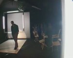 Sur l’espace scénique, arène, aire de jeu… un piano, un portant avec des costumes. Des projecteurs. Un gradin. Un fond blanc. De l’alcool, bien sûr. Des clopes, évidement. Quelques micros sur pied et un petit podium.