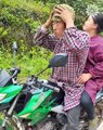 Dirt Bike Continues to Slip Downhill Despite Bikers Efforts to Stop it