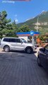 Cervo a spasso nell'area di servizio