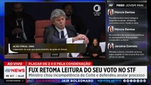 Em seu voto no julgamento do 8 de Janeiro, o ministro Luiz Fux, do Supremo Tribunal Federal (STF), afirmou que "não há provas que os réus ordenaram a destruição e depois omitiram, pelo contrário". Fux discursa após voto de Alexandre de Moraes e Flávio Dino a favor da condenação dos envolvidos.