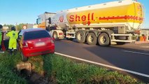 Palio e caminhão bitrem se envolvem em colisão na BR-277 em Cascavel