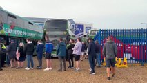 Pompey fans arrive back in Portsmouth after derby against Southampton