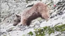 Kış uykusundan uyanan boz ayı yiyecek ararken görüntülendi