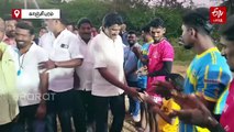 திருநெல்வேலி: திசையன்விளை அருகே கோயில் திருவிழாவை முன்னிட்டு நடத்தப்பட்ட ஓட்டப்பந்தயம் அனைவரையும் வெகுவாக கவர்ந்துள்ளது. இதில் 32-க்கும் மேற்பட்ட நாய்கள் பங்கேற்றன.நெல்லை மாவட்டம் திசையன்விளை அருகே பெருங்குளத்தில் அய்யா வைகுண்டர் பெருமைபதி திருவிழாவை முன்னிட்டு, முதன்முறையாக நாய்களுக்கான ஓட்டப்பந்தயம் இன்று (செப்.15) நடைபெற்றது. ஆர். ஆர். ரேசிங் கிளப் (RR Racing Club) சார்பில் நடைபெற்ற இந்த போட்டியில் திசையன்விளை, வள்ளியூர் உள்ளிட்ட சுற்றுவட்டார பகுதிகளில் இருந்து 32-க்கும் மேற்பட்ட நாய்கள் பங்கேற்றன.மொத்தம் 4 சுற்றுகளாக நடைபெற்ற இப்போட்டியில், 100 மீட்டர் தொலைவில் நாய்களுக்கான இலக்கு வைக்கப்பட்டிருந்தது. மணி அடித்ததும் நாய்கள், சிறுத்தைகளை போல சீறிப்பாய்ந்தன. இதில் வெற்றி பெற்ற நாய்களின் உரிமையாளருக்கு முதல் பரிசாக ரூ.15,000, இரண்டாம் பரிசாக ரூ.10,000, மூன்றாம் பரிசாக ரூ. 6000 வழங்கப்பட்டது. இதில், ஏராளமானோர் கலந்துகொண்டு போட்டியை கண்டு ரசித்தனர்.மக்களின் பாதுகாப்பை கருத்தில்கொண்டு, நாய்கள் முககவசம் அணிந்து போட்டியில் பங்கேற்க அனுமதி அளிக்கப்பட்டது. முன்னதாக, நாய்களின் உரிமையாளர்கள் போட்டியில் பங்கேற்கும் நாய்களுக்கு, ஊட்டச்சத்து பானங்கள் கொடுத்து உரிமைகள் தயார்படுத்தினர்.