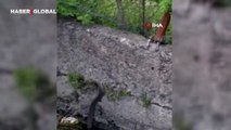 Su kanalında yorgun düşen 2 metrelik yılanı elleriyle kurtardılar