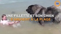 Une fillette et son chien s'amuse sur la plage !