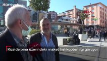 Rize'de bina üzerindeki maket helikopter ilgi görüyor