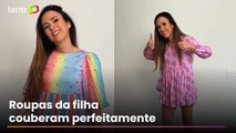 Tata Werneck se diverte usando vestidos da filha de 5 anos: 'Quem vai pegar as roupas de quem?'