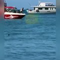 Vatandaşlar Antalya sahilinde gördüğü köpek balığını taşla kovaladı