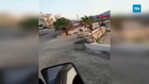 TIR'ın üzerindeki ekskavatör tabelaya takıldı! 7 araçta hasar oluştu