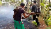 Pile burning, Flying J project area, Tusayan Ranger District, Kaibab National Forest. Kaibab National Forest fire personnel Brandon Oberhardt, Quentin Ford and Chantel Herrick led the pile burning operations. Slash piles are the result of forest restoration efforts, and the goal of burning them is to further reduce fuels that could feed high-intensity wildfire. Winter is typically an ideal time to burn piles because the snow surrounding them prevents fire from creeping outside of desired treatment boundaries.