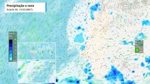 Aproximação de uma depressão fria provoca precipitação em território nacional e decréscimo acentuado da temperatura.