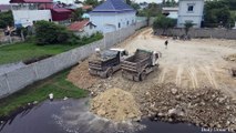 The Best Powerful Bulldozer Pushing Stone and Dump truck unloading soil and Stone into water , EP 4