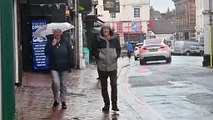 Rain blows in along Bridgnorth High Street as Storm Amy starts to bite