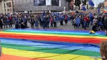 Piazza del Popolo diventa Piazza Europa, tra bandiere Ue e della pace